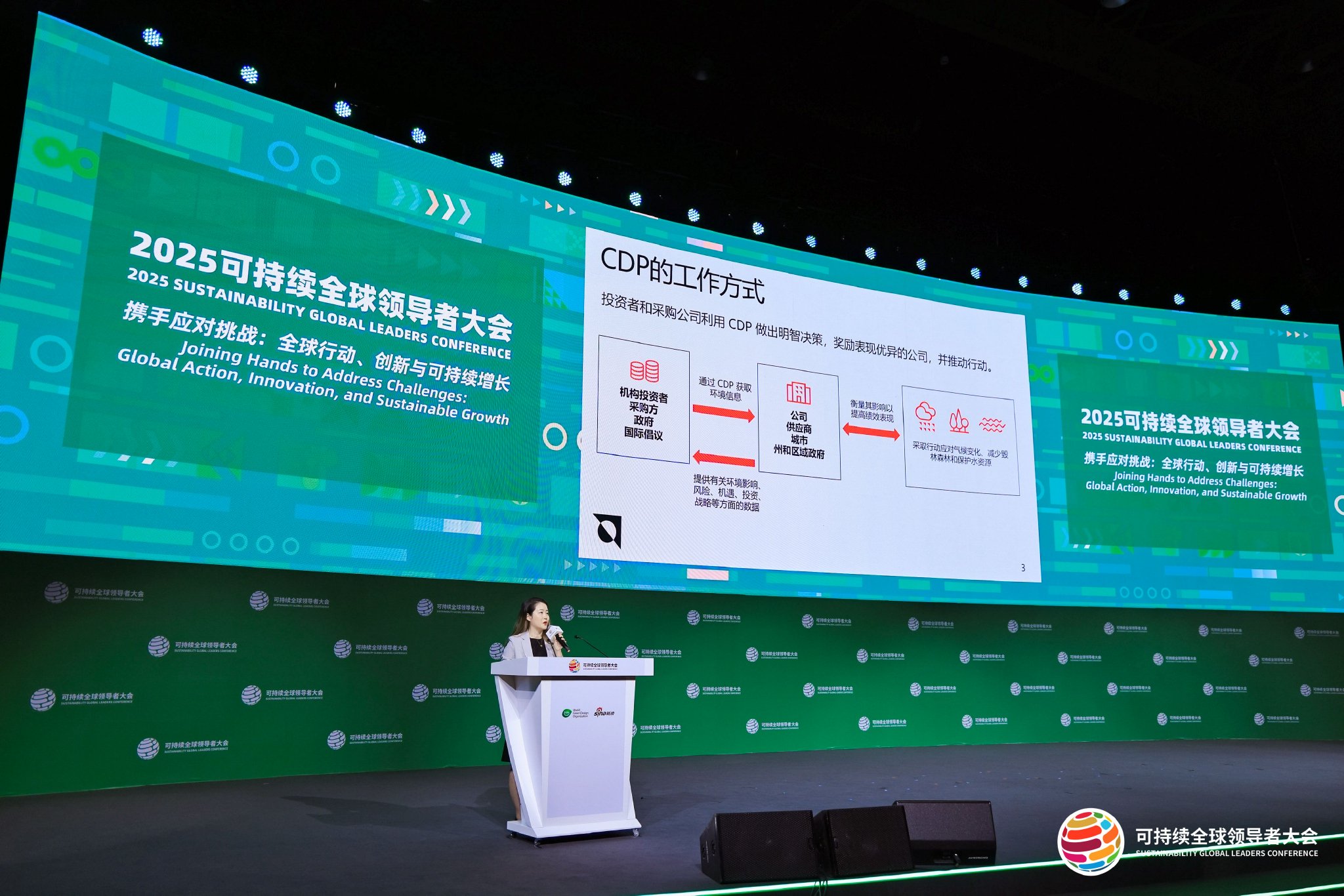 2025可持续全球领导者大会于10月16日-18日在上海市黄浦区世博园区召开。10月17日分论坛上,《2025年环境信息披露报告——急速变革环境下的商业韧性全景评估》报告发布,CDP中国披露负责人翟悦竹介绍报告发布情况。