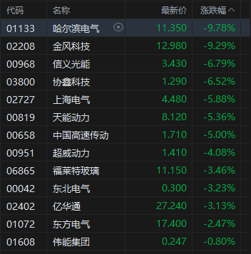 电力设备股走弱,哈尔滨电气跌超9%。开源证券发布研报称,充电设施服务能力“三年倍增”行动方案落地,有望引领新一轮充电桩投资,产业链各环节均将受益。(1)充电桩;(2)充电模块;(3)充电枪及线缆;(4)充电运营及充电聚合。