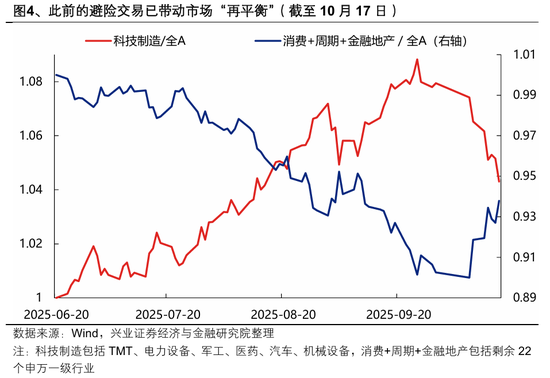 另一方面,三季报业绩有望带动市场聚焦景气线索、凝聚共识。经历三季度产业趋势密集催化后,三季报仍将是验证新动能景气优势的重要窗口。当前由于避险交易带来的“再平衡”带动景气主线的性价比问题逐步消化后,景气优势或将再度成为市场聚焦的核心。避险情绪缓解、产业趋势和景气优势共振,市场对于景气主线的共识有望再一次凝聚,引领市场上行。