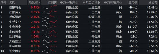 有色龙头ETF(159876)标的指数涨幅前十大成份股