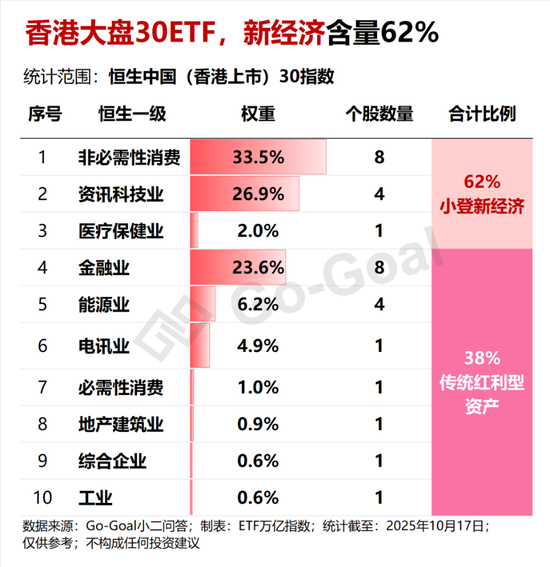 为什么资金敢于逆势抄底?配置这只ETF,相当于一键买入30家在香港上市的国内最具代表性的龙头企业,涵盖腾讯、阿里、小米、建设银行、美团等,这些公司基本盘稳固、盈利能力强,具备较强的抗跌性与修复弹性。