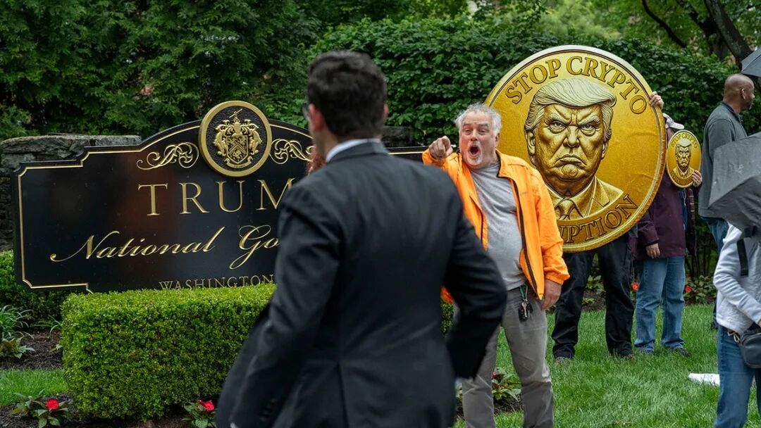 5月22日,在华盛顿特区的特朗普国家高尔夫俱乐部举行的专属晚宴上,一名活动人士公开谴责了一名与会者