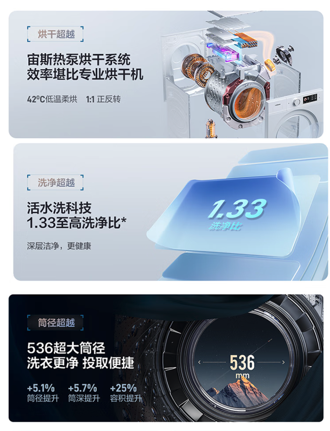 13kg 洗涤 + 9kg 热泵烘干,全家衣物连洗带烘不换筒