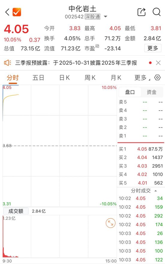 个股方面,中化岩土(002542)开盘不到一分钟即涨停。
