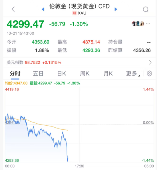 另外,国际贵金属价格跳水,现货黄金失守4300美元关口,日内跌幅扩大至1.3%,现货白银跌近3%。