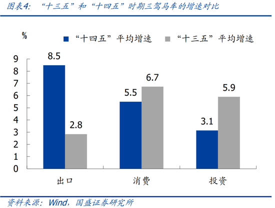 >从目标设定看,除“十四五”外,均设定了年均GDP目标增速。2000年以来,我国经历了5轮五年规划时期,其中“十五”的GDP目标增速为7%左右、“十一五”为7.5%、“十二五”为7%、“十三五”为6.5%以上,“十四五”为“保持在合理区间、各年度视情提出”。