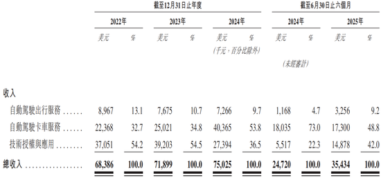 作为核心业务的自动驾驶出租车(Robotaxi)板块表现尤为亮眼,2025年上半年收入达325.6万美元(约合人民币2319万元),同比大幅增长178.8%。