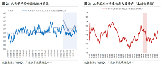 一是全球股市涨幅收敛,叙事交易松动、事件冲击退潮。我们编制的大类资产轮动指数有所回落,但变动频次仍处于高位,周均122.2次(上周为128次),大类资产进入“主线切换期”,新的主线或将聚焦经济驱动。